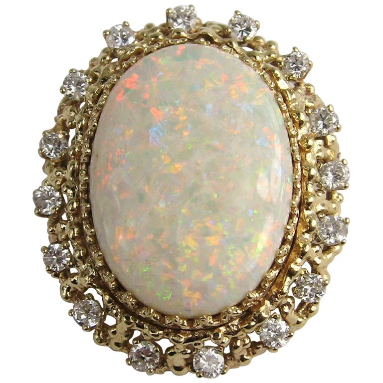 14 Karat Gold Opal Diamond Pendant Brooch 1960s 13 Carat For Sale At 1stdibs